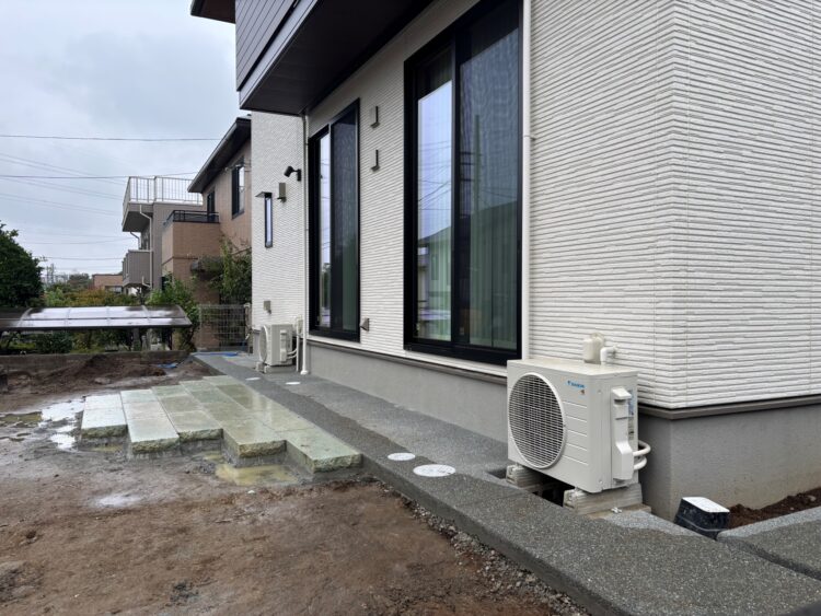 犬走り、テラスが完成し庭の骨格が見えてきました。