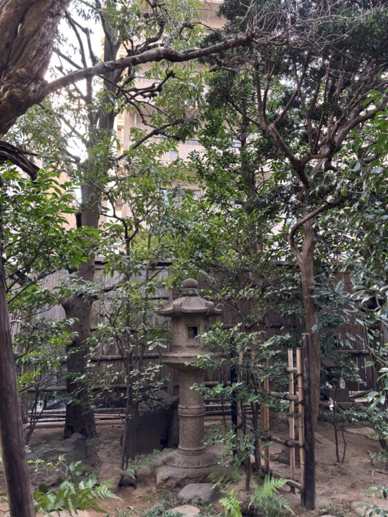 ビルの谷間にあるこちらのお庭は日の当たる時間が短く、また北風の強い日でしたので