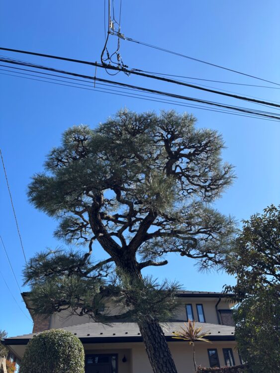写真ではわかりづらいですが、大きな松ですので一日がかりの作業となります。